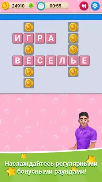«Кроссворд онлайн» — казуальная головоломка о составлении слов из букв и вписывании их в соответствующие ячейки. Предстоит состязаться с другими игроками за место в турнирной таблице. Присутствуют уровни и ежедневные подарки. Позволяет использовать подсказки, находить дополнительные слова, получая в награду золото, собирать кристаллы. Можно приглашать в игру друзей. На экране отображаются набранные очки, заработанные монеты, время, кнопки выхода из режима и перехода в настройки. Имеются внутриигровые покупки. Есть реклама.