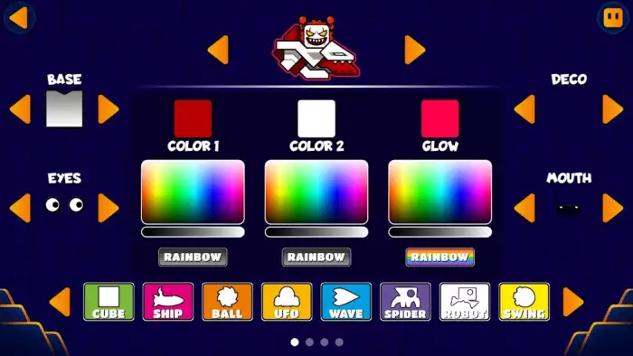 Есть реклама, встроенный редактор для создания уровней, которыми можно делиться с сообществом. Доступен запуск игрового контента, созданного другими пользователями. Имеется добавление никнейма, аватара. Иконку профиля можно заменить в обмен на заработанные ресурсы. Доступен просмотр оставшегося времени до начала событий. Присутствуют магазин, раздел настроек и функция обратной связи. Есть просмотр игрового прогресса, количества полученных наград: корон, драгоценных камней, звезд, прочих.