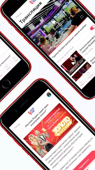 «Русское радио» — радиостанция для прослушивания отечественных музыкальных композиций в жанре поп, радиопередач. Можно участвовать в голосованиях, читать новости, видеть время показа передач, смотреть шоу, трансляции. Присутствуют оценка треков лайками и добавление отметки «Не нравится». Имеется показ имен исполнителей, названий песен во время воспроизведения. Есть русскоязычный интерфейс, светлая тема, функция поиска, уведомления, информация о розыгрышах, акциях. Доступны регистрация учетной записи и добавление аватара.