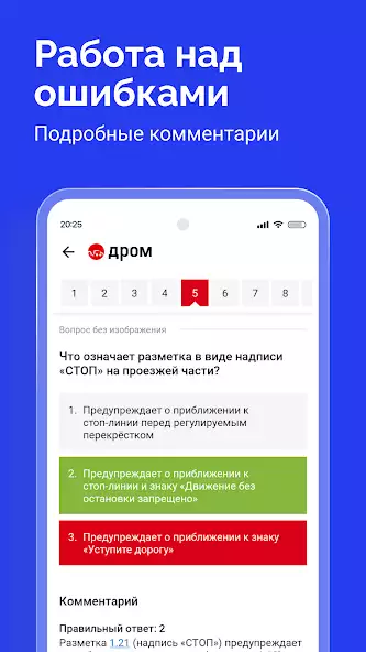 Позволяет усваивать информацию по темам. Имеются напоминания, встроенный чат. Можно отслеживать прогресс и успеваемость, проводить работу над ошибками, добавлять контент в избранное. Функционирует без подключения к интернету. Материалы взяты с официального портала ГИБДД Министерства внутренних дел Российской Федерации. Есть отзывы об автошколах и навигация по номерам билетов. Реклама отсутствует. Язык интерфейса — русский.