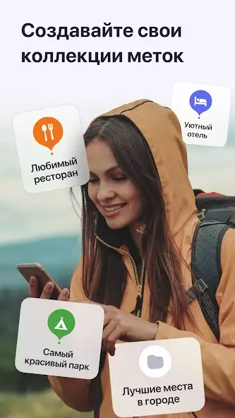 Доступны детализированные тропы для хайкинга и функция записи треков. Карты обновляются участниками проекта OpenStreetMap. Присутствуют интерфейс на русском языке и поддержка Android Auto. Доступно отправление своего местоположения другим людям в социальные сети, сообщениях. Есть показ местонахождения друзей на карте, направления дорог при движении, расстояния до места назначения, времени преодоления выбранного маршрута. Имеются добавление меток и их объединение в коллекции.