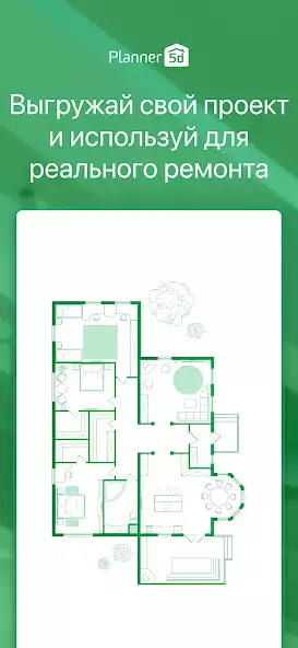 Planner 5D — планировщик для генерации, редактирования, сохранения дизайн-проектов интерьера жилых и коммерческих зданий, ландшафта прилегающей территории. Есть выбор отделочных материалов, декора, мебели. Доступна генерация планов помещений и этажей. Программа работает на основе искусственного интеллекта. Можно просматривать проекты в 3D-, 2D- и прочих форматах. Имеется изменение размеров элементов. Доступно участие в ежедневных соревнованиях по дизайну для получения наград.