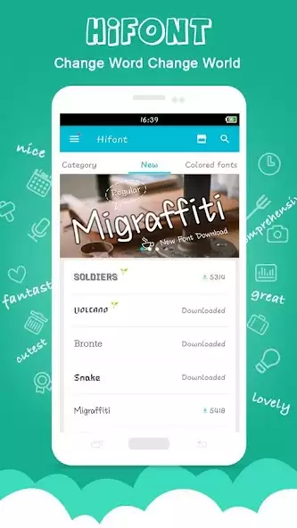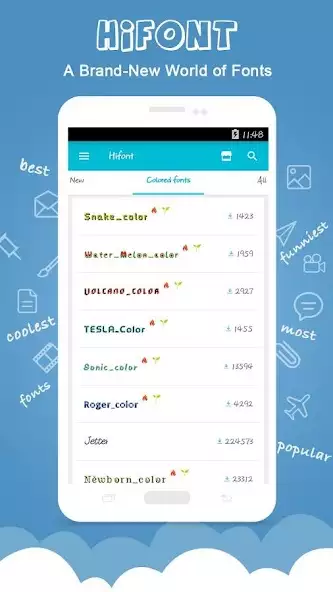 HiFont — коллекция из более 4000 шрифтов для их загрузки и установки. Позволяет изменять системное начертание букв, выбирая из различных категорий, например темных, галактических, любовных, цветных. Имеются смайлы, еженедельные обновления, персональные, новые или популярные подборки. Возможно настраивать размер символов, использовать свой контент.