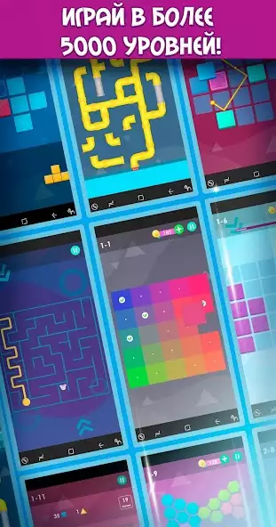 Головоломки — сборник казуальных однопользовательских логических заданий для тренировки мозга. Присутствует более 5000 уровней, где предстоит перемещать блоки в специальные формы, прокладывать трубопровод, соединять точки линией, решать задачи со спичками, проходить лабиринты и прочие испытания. Функционирует без подключения к Сети. Можно отслеживать внутриигровой прогресс. На экране отображаются набранные очки, номер текущего этапа, кнопки паузы и подсказок. Имеется реклама.