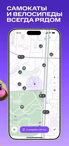Есть оформление подписки, включение режима «Ожидание», скидки на пакеты минут. Доступны аренда и бронирование двух или более велосипедов, самокатов с одной учетной записи для организации групповых поездок. Присутствует русскоязычный интерфейс. Имеются светлая тема и реклама. Программа предназначена для жителей Москвы, Казани, Краснодара, Сочи, Новосибирска, других городов.