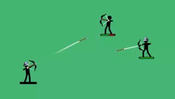 - Простой интерфейс. Темные очертания персонажей хорошо заметны. Запас стрел в «Лучниках 2» бесконечен, запуск и указание направления снаряда осуществляется проведением пальцем по экрану.
