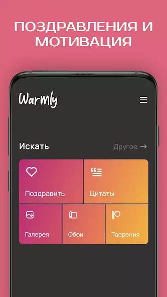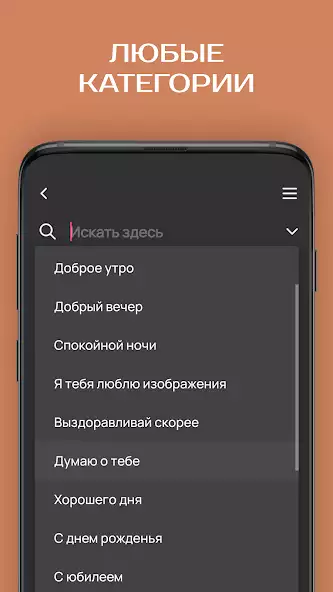 «Пожелания на все случаи» — сборник открыток, которые можно использовать, чтобы поздравить или замотивировать близких людей. Имеет строку поиска, куда разрешается ввести фразу, чтобы обнаружить нужную категорию. Есть картинки со словами для любимых, больных, именинников и прочих. Понравившиеся изображения позволяется добавить в список избранных или скачать на устройство. Имеется встроенный редактор для создания коллажей и наложения текста на фотографии из галереи телефона.