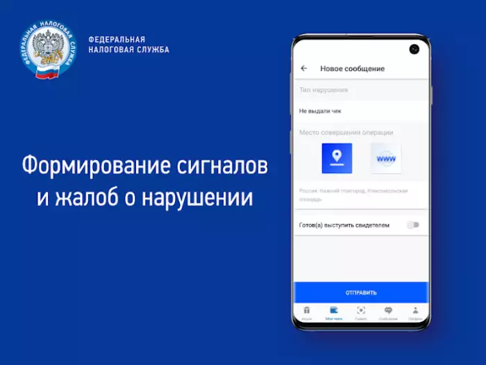 Можно писать сообщения о нарушениях, добавляя место совершения операции, просматривать направленные жалобы. Возможно получать бонусы от партнеров. Авторизация осуществляется по номеру мобильного телефона, через личный кабинет налогоплательщика, портал Госуслуг, социальные сети: «ВКонтакте» или «Одноклассники».