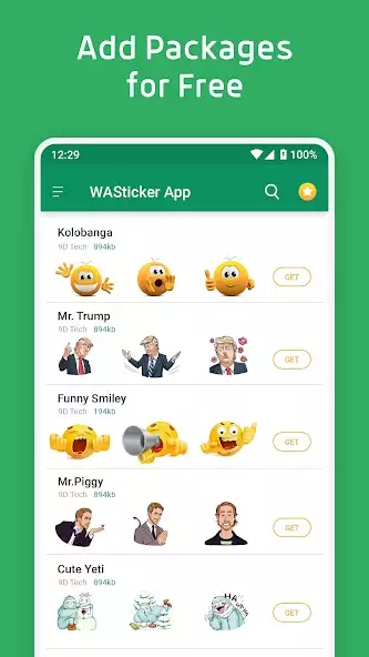 «Стикеры для WhatsApp и эмодзи» — каталог картинок в HD-качестве, персонализирующих общение между людьми. Доступны: 3D-, текстовые или анимированные изображения, коллекция любовных смайлов. Присутствует выбор стикерпаков, например, с колобками или котятами. Можно создавать наклейки, отправлять близким и делиться ими в группах, добавлять на фото, просматривать информацию о пакетах, ставить лайки. Возможно добавление контента в избранное. Имеет англоязычный интерфейс.