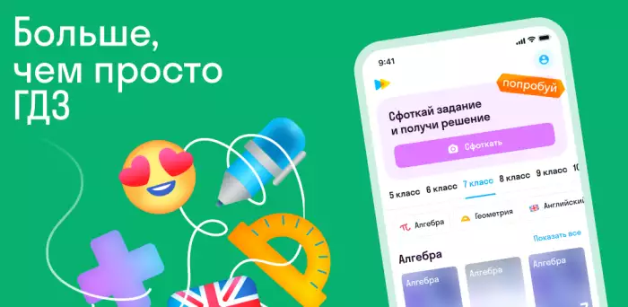«Skysmart решения: ГДЗ» — решебник готовых домашних заданий по математике, алгебре, геометрии, английскому и русскому языкам для помощи в учебе ученикам 1–11 классов. Можно делать фото в программе или выбирать изображение из галереи устройства для поиска заданных упражнений, искать по номеру страницы, изучать пошаговые объяснения выполнения задач. Есть встроенный помощник и поисковая строка. Доступна платная подписка. Контент представлен в виде списка миниатюр. Приложение имеет русскоязычный интерфейс.